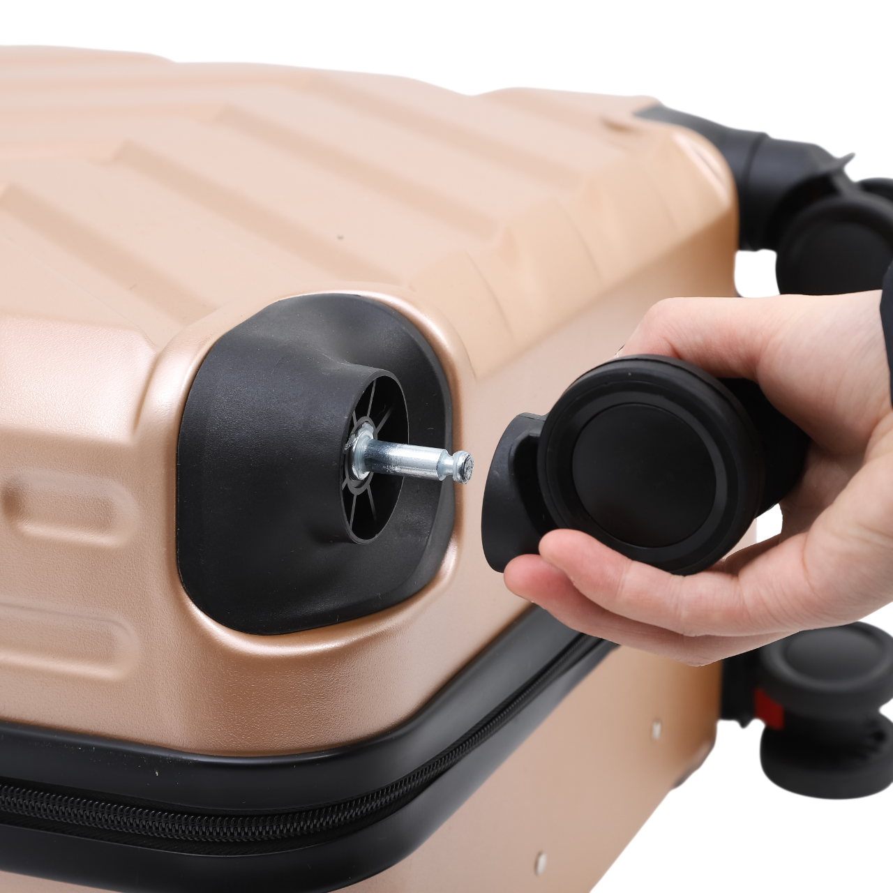 Kufferterne er fremstillet i slidstærkt polycarbonat, som kombinerer lav vægt med høj styrke og lang holdbarhed. De eksklusive aftagelige hjul sikrer en stabil og lydsvag køreoplevelse, samtidig med at de gør vedligeholdelsen enkel og fleksibel.